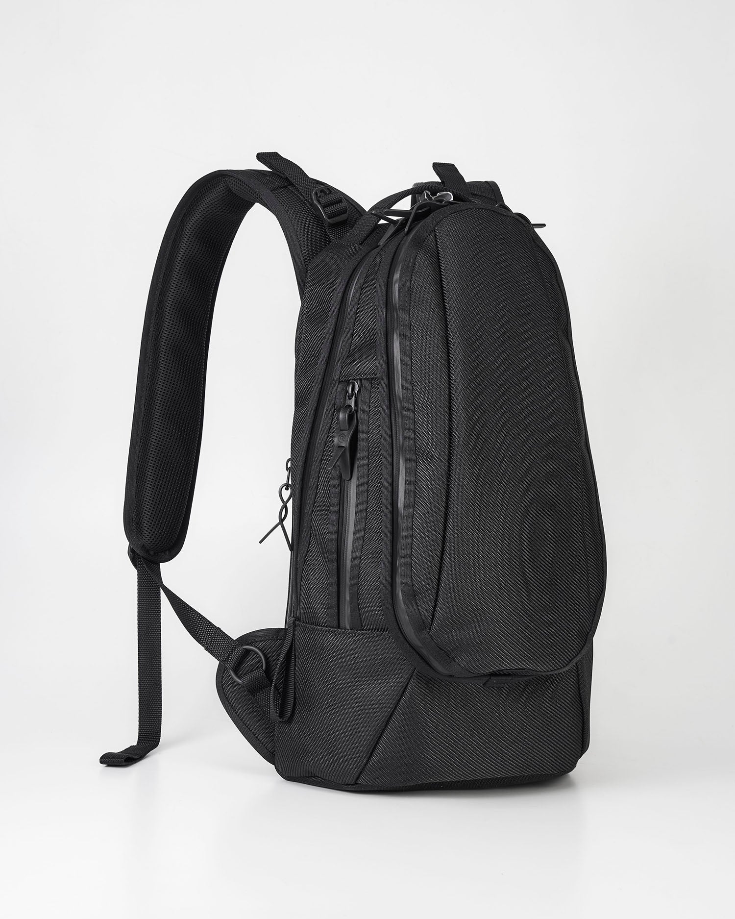 見た目の重厚感からは、想像出来ない軽量感と、実際に背負って頂いた際には、更なる軽量感をご実感頂けます様、人体構造に基づいた「背負い心地感の良さ」を追求し、腰のくぼみ部分に密着させる事により、重量を分散させる、新しい構造で作り込みを施した、従来にはなかった背負った際の「触感(フィット感)」もお楽しみ頂ける新しい「バックパック」です。また、背中に当たる部分に汗をかいたり、長時間背負って疲労を感じた際は、