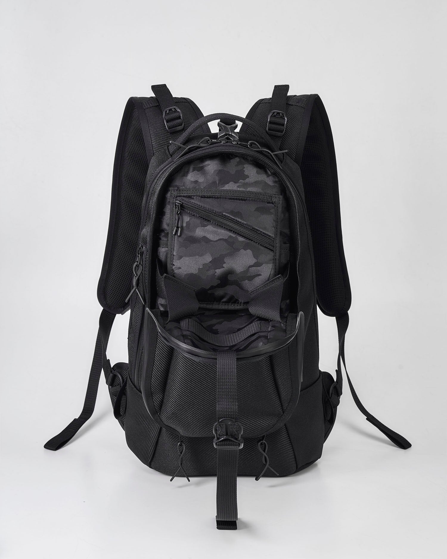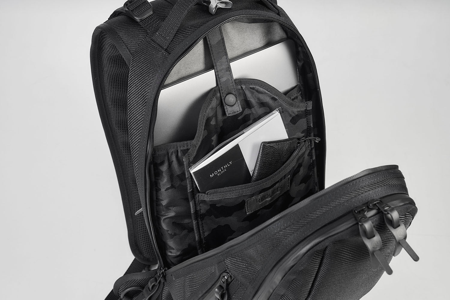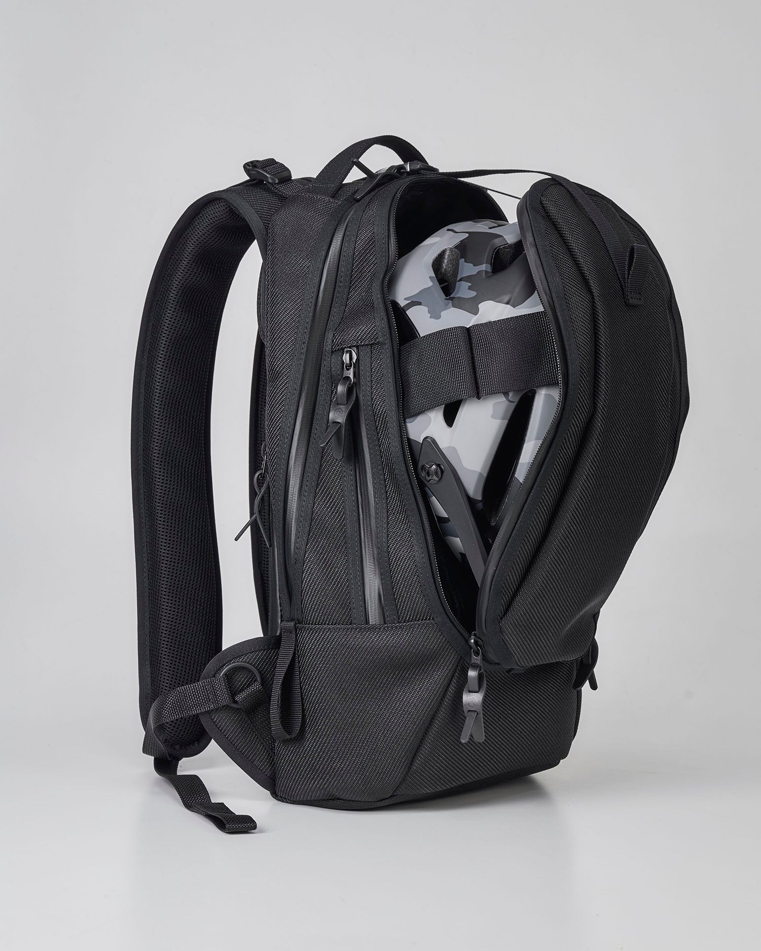シンプルな外観ながらも、2層構造で仕立て上げ、ポケットの数は、 驚異の7室を配置。自転車用ヘルメットから、PCや鍵まで、様々なサイズの収納物に 対応可能なポケットを配置し、ご自身がお使いやすい整理収納が行え、 ビジネスシーンからレジャーまで、あらゆるシーンでご活用頂けるバックパックです。